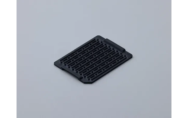 POTICON ESD PPSの持つ帯電防止性能を活かした半導体搬送トレー。反りが出やすいトレー形状も高い寸法精度で実現しています。